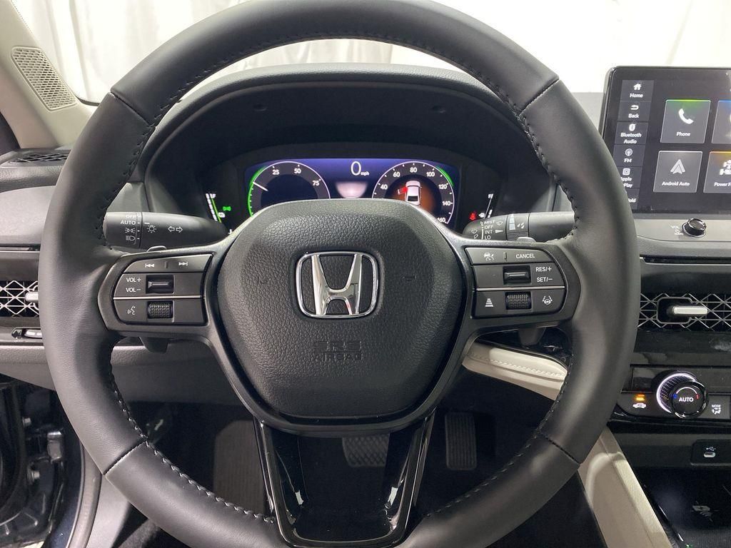 Check out this New 2026 Honda Accord Hybrid EX-L. Offered at just $36290, this Honda Accord Hybrid won’t last long. This FWD Honda Accord Hybrid EX-L is powered by a 2.0L I4 DOHC 16V an includes these features and benefits: 2.0L I4 DOHC 16V, 4-Wheel Disc Brakes, 8 Speakers, ABS brakes, Adaptive Cruise Control: Adaptive Cruise Control (ACC) with Low-Speed Follow, Air Conditioning, Alloy wheels, AM/FM radio, Apple CarPlay/Android Auto, Auto High-beam Headlights, Auto-dimming Rear-View mirror, Automatic temperature control, Blind Spot Information (BSI) System warning, Brake assist, Bumpers: body-color, Compass, Delay-off headlights, Driver door bin, Driver vanity mirror, Dual front impact airbags, Dual front side impact airbags, Electronic Stability Control, Emergency communication system: HondaLink, Exterior Parking Camera Rear, Four wheel independent suspension, Front anti-roll bar, Front Bucket Seats, Front Center Armrest, Front dual zone A/C, Front reading lights, Fully automatic headlights, Heated door mirrors, Heated Front Bucket Seats, Heated front seats, Illuminated entry, Knee airbag, Lane departure: Lane Keeping Assist System (LKAS) active, Leather Shift Knob, Leather steering wheel, Leather-Trimmed Seat Trim, Low tire pressure warning, Memory seat, Occupant sensing airbag, Outside temperature display, Overhead airbag, Overhead console, Panic alarm, Passenger door bin, Passenger vanity mirror, Power door mirrors, Power driver seat, Power moonroof, Power passenger seat, Power steering, Power windows, Radio data system, Radio: 180-Watt Audio System, Rear anti-roll bar, Rear reading lights, Rear seat center armrest, Rear side impact airbag, Rear window defroster, Remote keyless entry, Security system, Speed control, Speed-sensing steering, Speed-Sensitive Wipers, Split folding rear seat, Steering wheel mounted audio controls, Telescoping steering wheel, Tilt steering wheel, Traction control, Trip computer, Turn signal indicator mirrors, Variably intermittent wipers, and Wheels: 17" x 7.5J Pewter Gray.