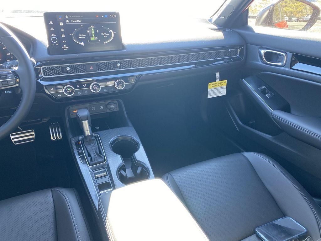 Check out this New 2026 Honda Civic Hybrid Sport Touring. Offered at just $32107, this Honda Civic Hybrid won’t last long. This FWD Honda Civic Hybrid Sport Touring is powered by a 2.0L 16V DOHC an includes these features and benefits: 2.0L 16V DOHC, 12 Speakers, 4-Wheel Disc Brakes, ABS brakes, Adaptive Cruise Control: Adaptive Cruise Control (ACC) with Low-Speed Follow, Air Conditioning, Alloy wheels, AM/FM radio, Apple CarPlay/Android Auto, Auto High-beam Headlights, Auto-dimming Rear-View mirror, Automatic temperature control, Blind Spot Information (BSI) System warning, Bose Premium Sound System, Brake assist, Bumpers: body-color, Compass, Delay-off headlights, Driver door bin, Driver vanity mirror, Dual front impact airbags, Dual front side impact airbags, Electronic Stability Control, Emergency communication system: HondaLink, Exterior Parking Camera Rear, Four wheel independent suspension, Front anti-roll bar, Front Bucket Seats, Front Center Armrest, Front dual zone A/C, Front reading lights, Fully automatic headlights, Heated door mirrors, Heated Front Bucket Seats, Heated front seats, Illuminated entry, Knee airbag, Leather Shift Knob, Leather steering wheel, Leather-Trimmed Seat Trim, Low tire pressure warning, Navigation system: Google Maps, Occupant sensing airbag, Outside temperature display, Overhead airbag, Overhead console, Panic alarm, Passenger door bin, Passenger vanity mirror, Power door mirrors, Power driver seat, Power moonroof, Power passenger seat, Power steering, Power windows, Radio data system, Rain sensing wipers, Rear anti-roll bar, Rear seat center armrest, Rear side impact airbag, Rear window defroster, Remote keyless entry, Security system, Speed control, Speed-sensing steering, Split folding rear seat, Steering wheel mounted audio controls, Tachometer, Telescoping steering wheel, Tilt steering wheel, Traction control, Trip computer, Turn signal indicator mirrors, Variably intermittent wipers, and Wheels: 18" Alloy with Matte Shark Gray Inserts.